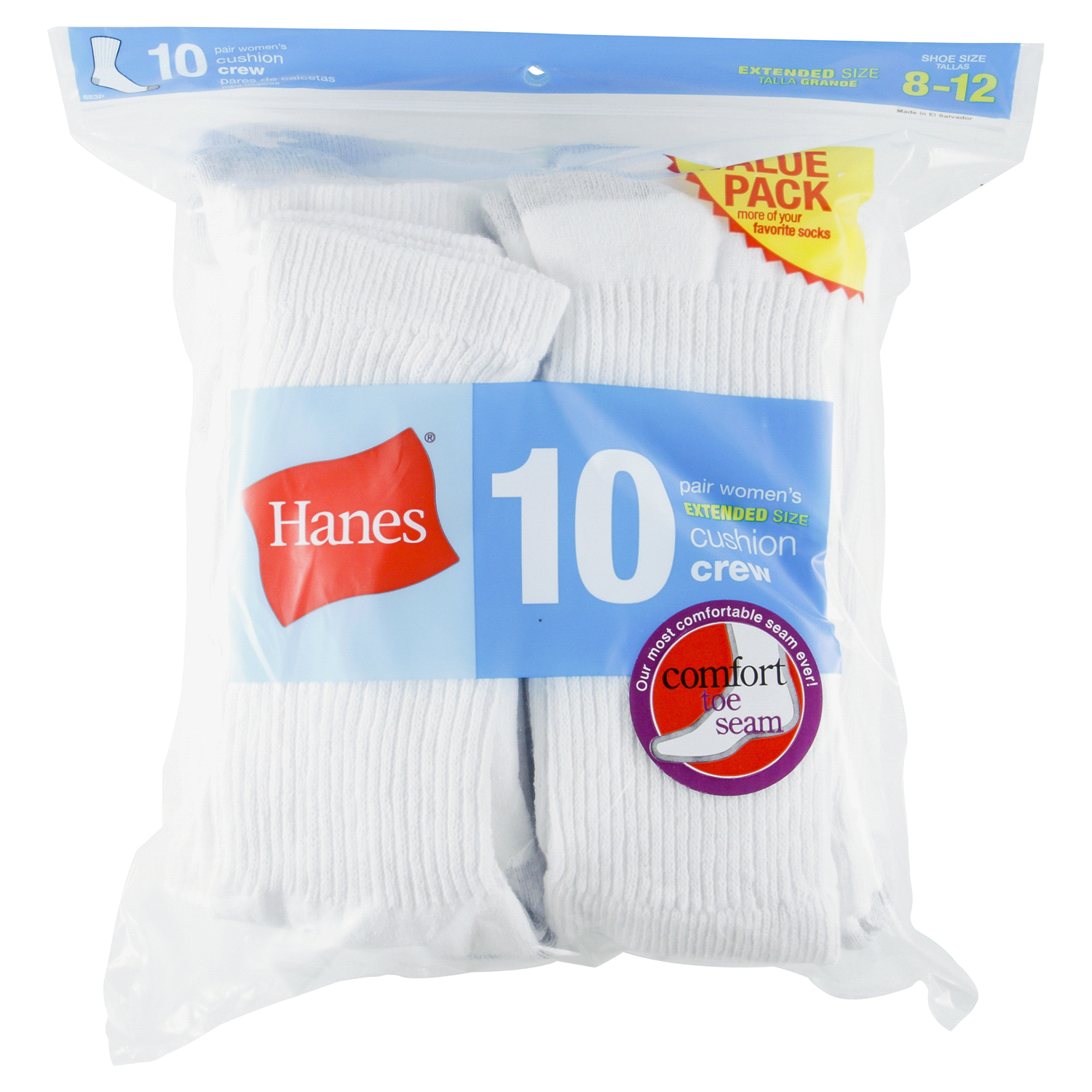 Hanes Women's Extended Size Cushioned Crew Socks - White 8-12
