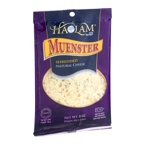Haolam Munster cheese is a soft cheese with a smooth, creamy texture, ideal for a variety of dishes. This kosher shredded cheese is a tasty addition to homemade scalloped potatoes. , refrigerated, 8 o…
