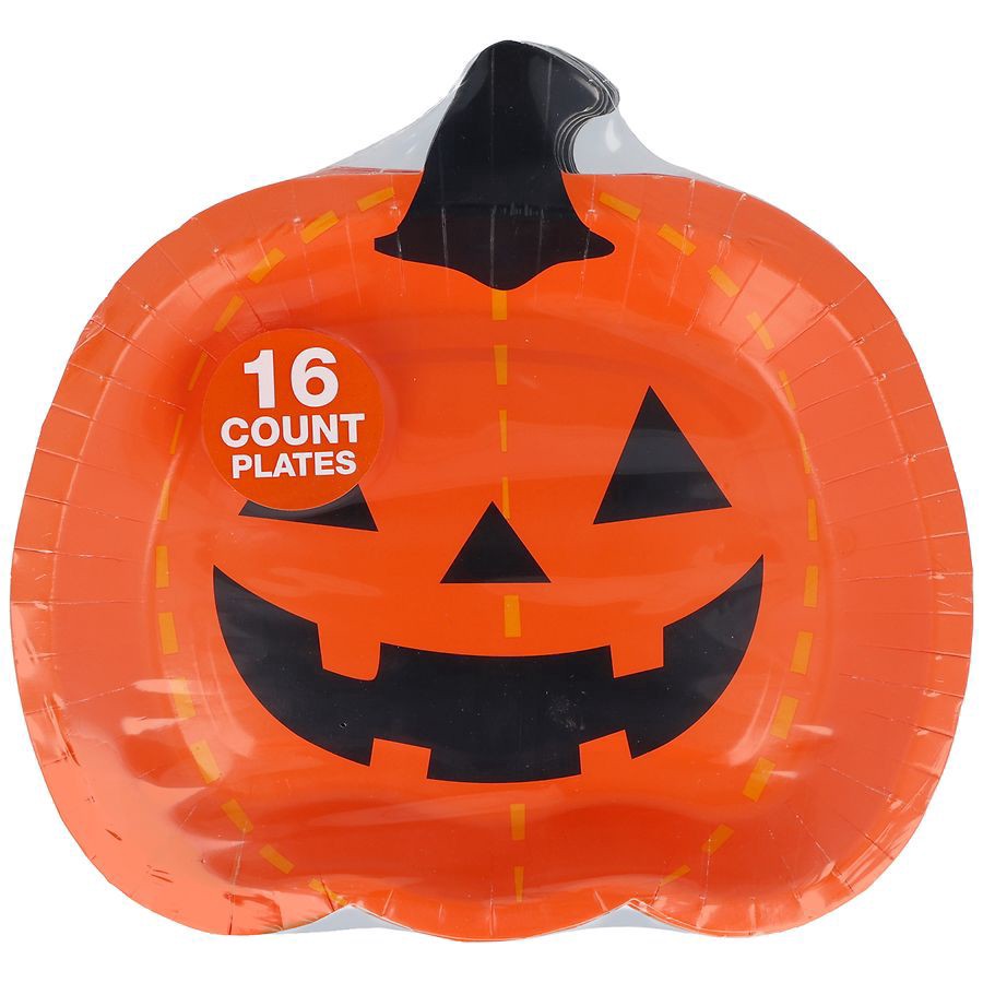 slide 2 of 5, Happy Halloween Plates Pumpkin Small, 16 ct
