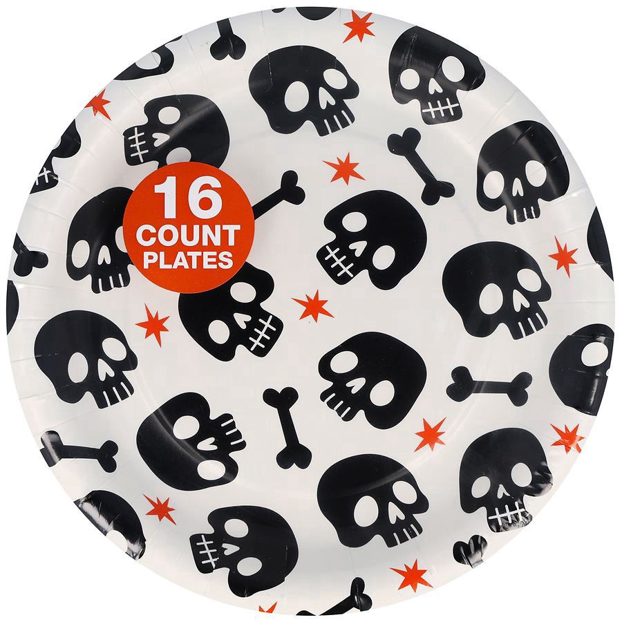 slide 2 of 5, Happy Halloween Plates Skeleton Small, 16 ct