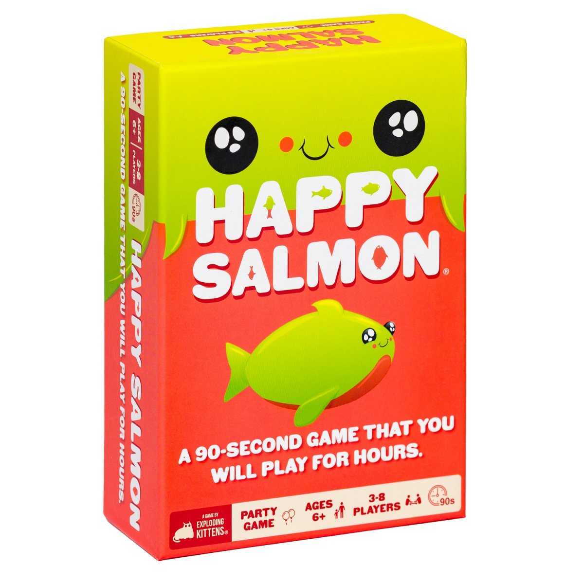 Happy Salmon is a simple, fast-paced card game that gets everyone moving and laughing in two minutes. Everyone simultaneously calls out the action shown on their top card - "High 5", "Pound It", "Swit…