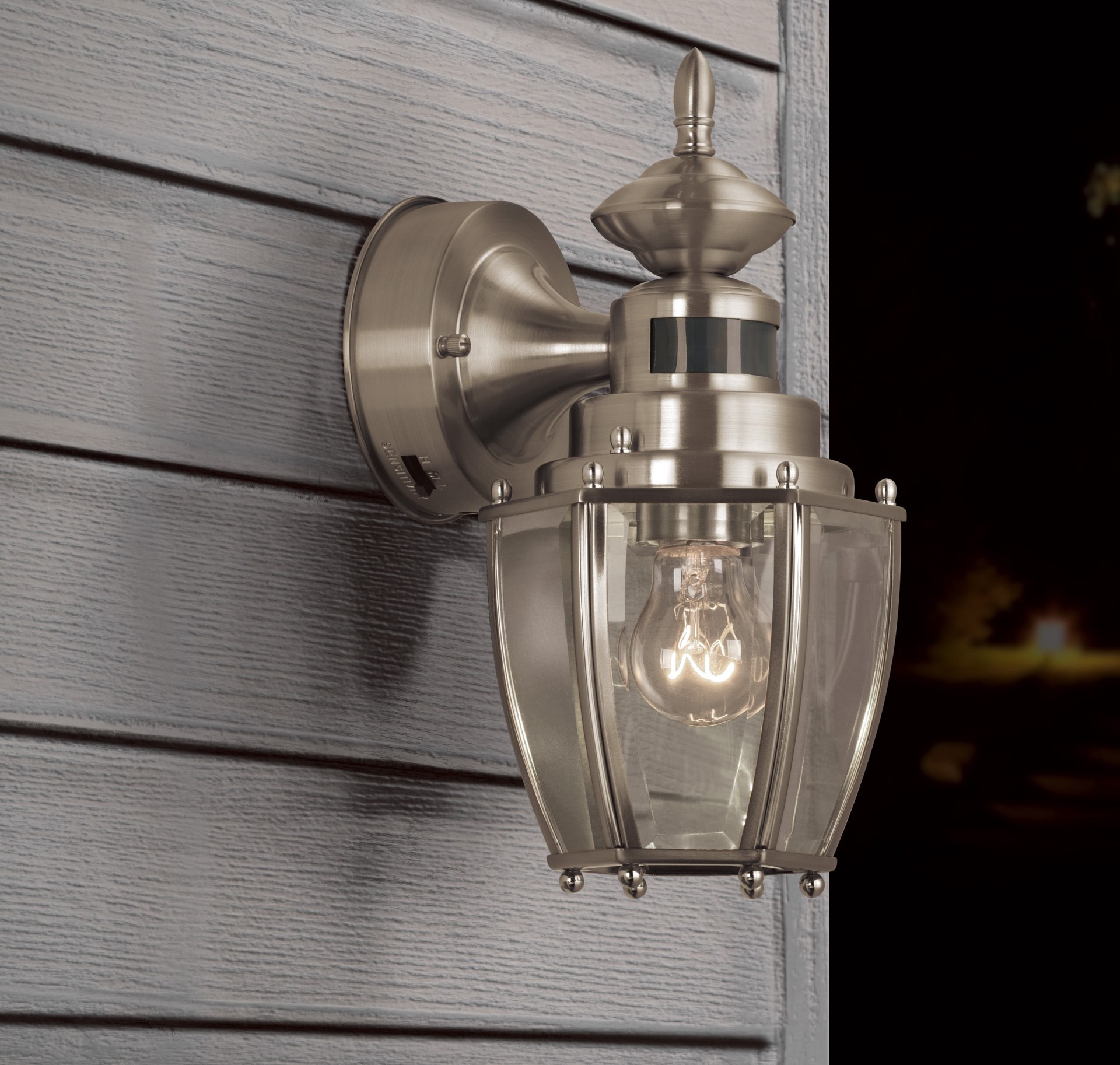 Project Source Glynwater 1 -Light 11.75-in H Brushed Nickel Hardwired Motion Sensor Dusk to Dawn Outdoor Wall Light