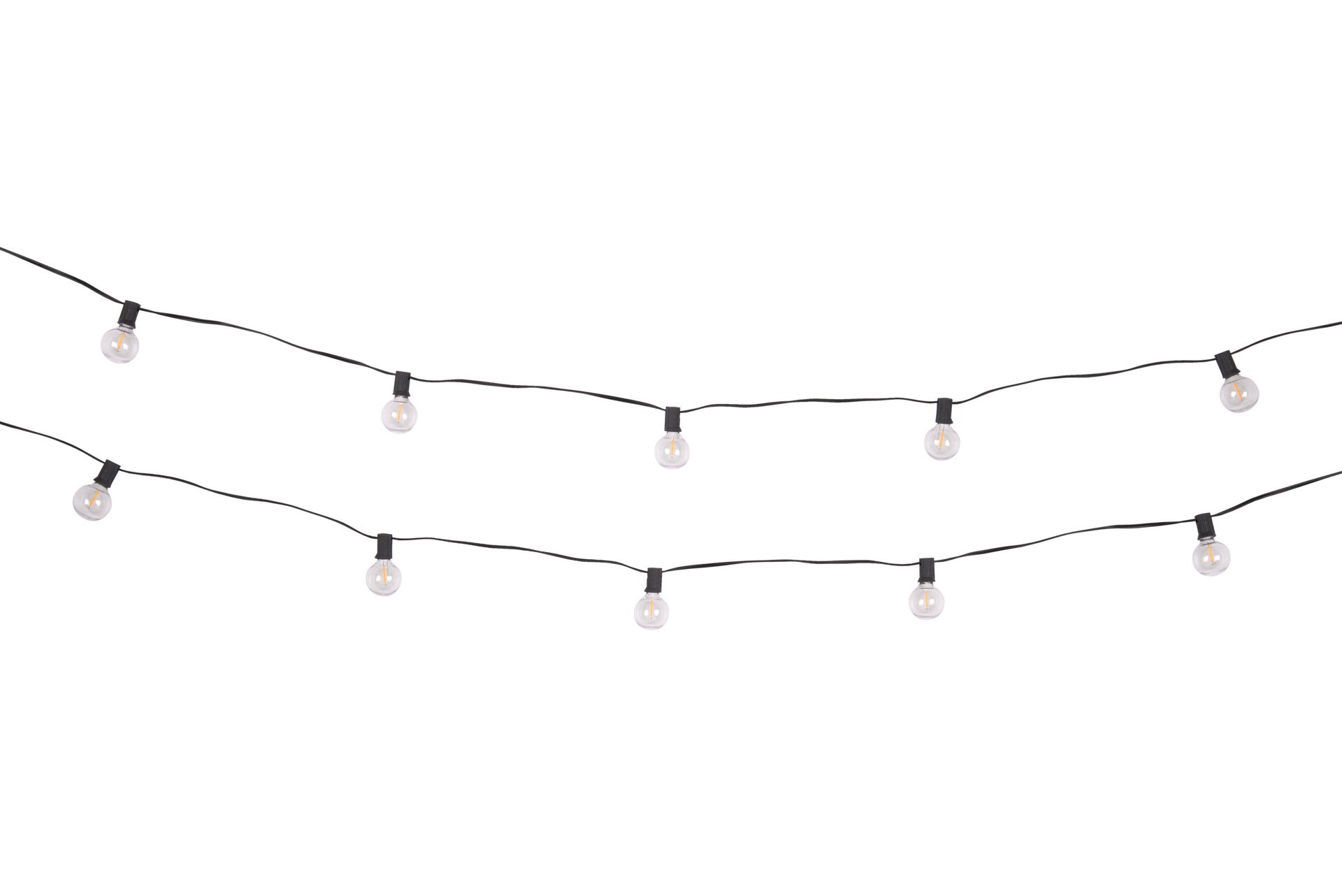 Includes ten G40 0.6-watt LED bulbs. Features shatter resistant bulbs. This string light adds fun and function to any area in your home, perfect for porches, patios, dorm rooms, or bedrooms. Total lig…