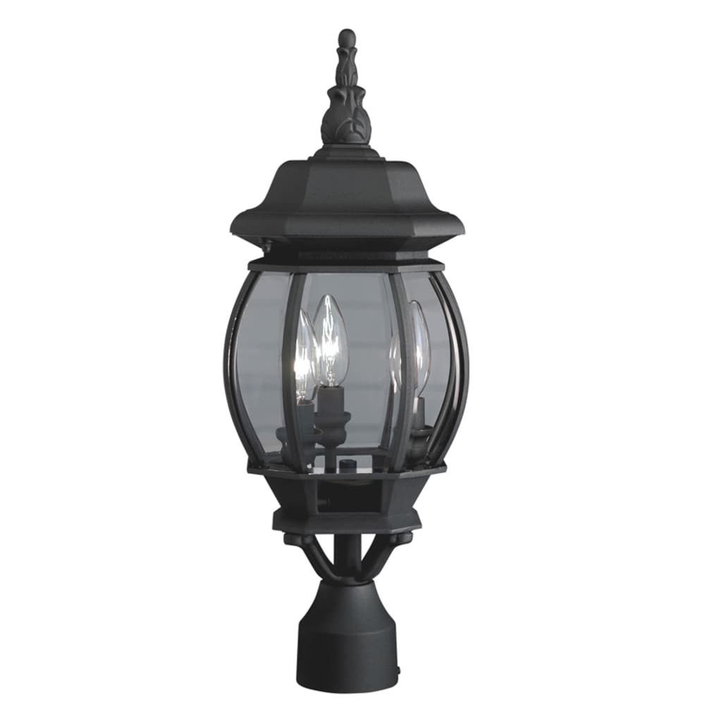 Light up your home's exterior. Black finish outdoor post lantern delivers an air of elegance. Beveled glass offers a clean look. Weather-resistant die-cast aluminum operates in rain or shine. Uses 60-…