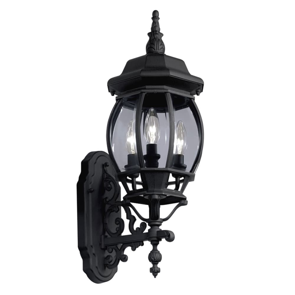 Black die-cast aluminum fixture with beveled glass is weather-resistant and sturdy. Three 60-watt incandescent bulbs required (not included). 7.44-in W x 22.68-in H x 10.59-in D. 3-year base warranty …