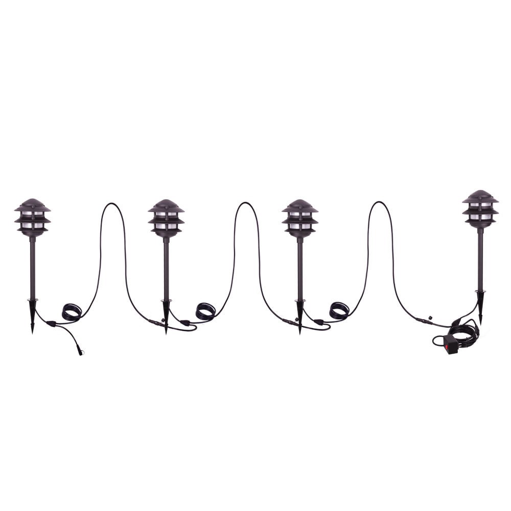 4 pack linkable landscape light kit will accentuate your property in a pleasant light. Directly plug into outlet with no transformer needed. Master on/off switch on the plug and link up to 12 lights. …