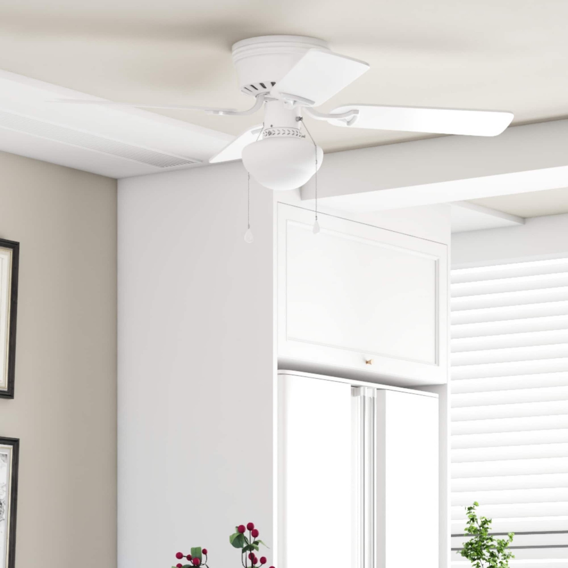 Low profile design to be mounted flush with the ceiling where more walk-through space is. Easy to use pull chains are included for quick adjustments to the 3 speed settings and on/off light control. O…