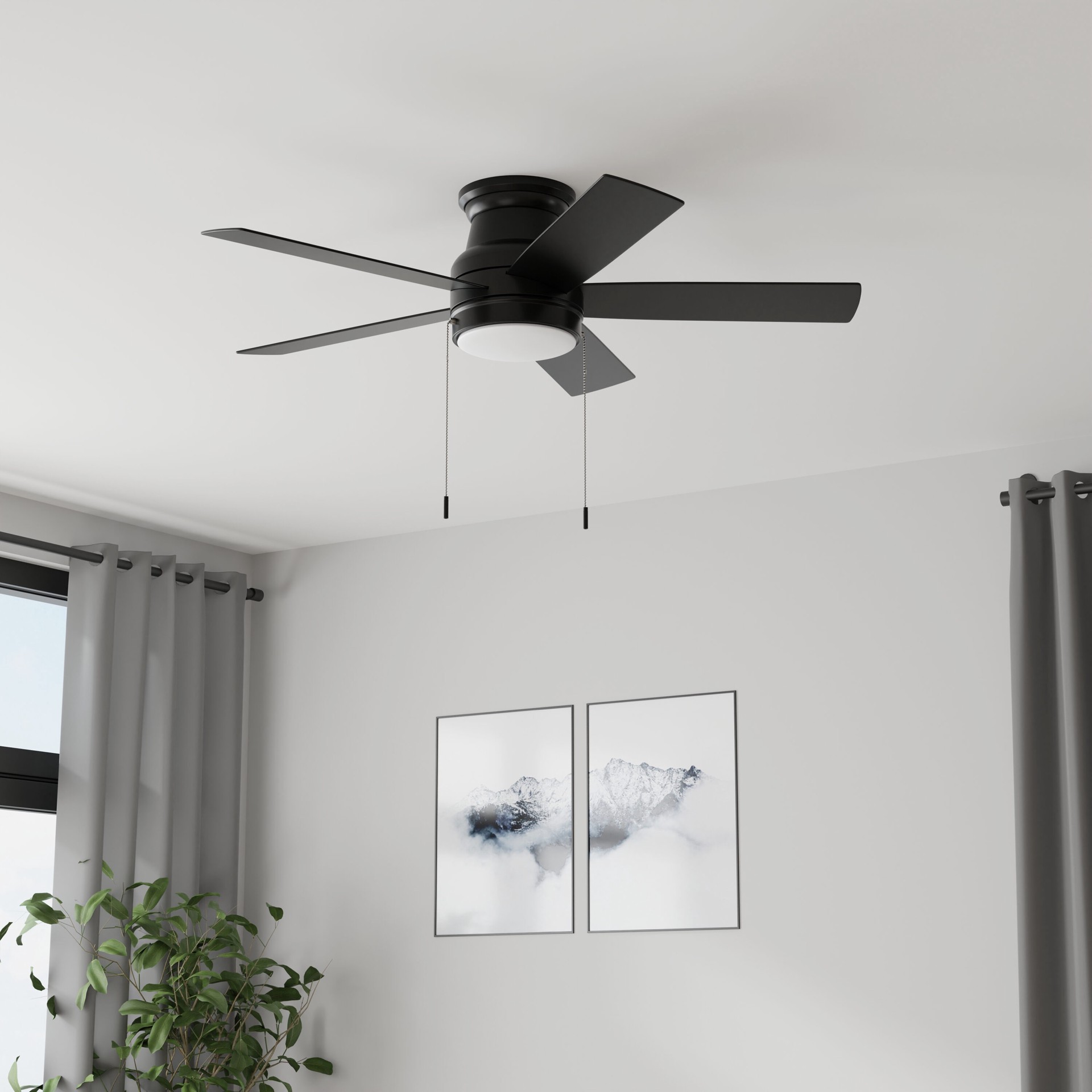 Harbor Breeze Calverton Easy2Hang 44-in Matte Black with Matte Blades Integrated LED Flush Mount Ceiling Fan With Light 5 -Blade