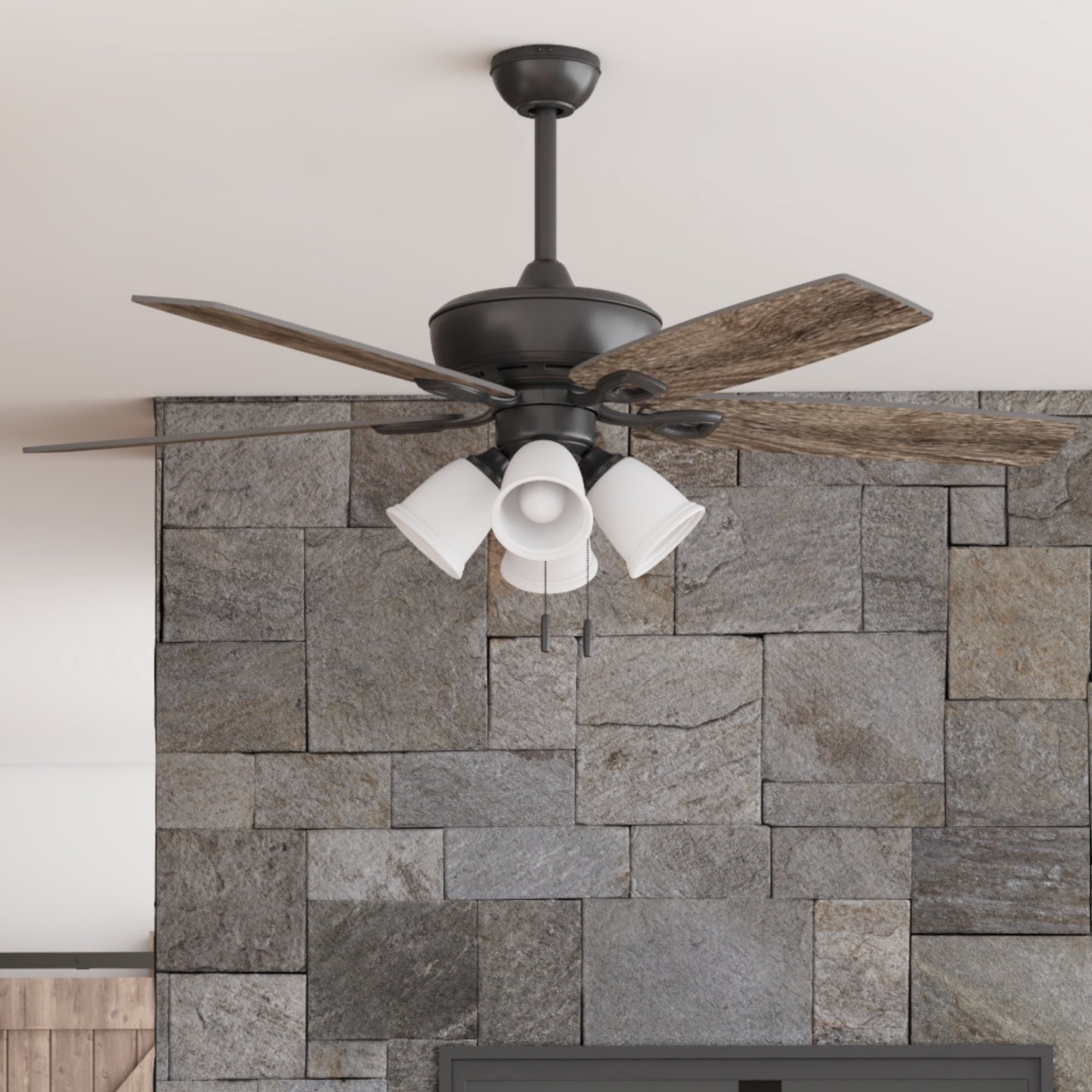 This multi-position ceiling fan can be hung close to the ceiling where more walk-through space is, on standard ceilings with a 4-in downrod (included) or on angled ceilings. Easy-to-use pull chains in…