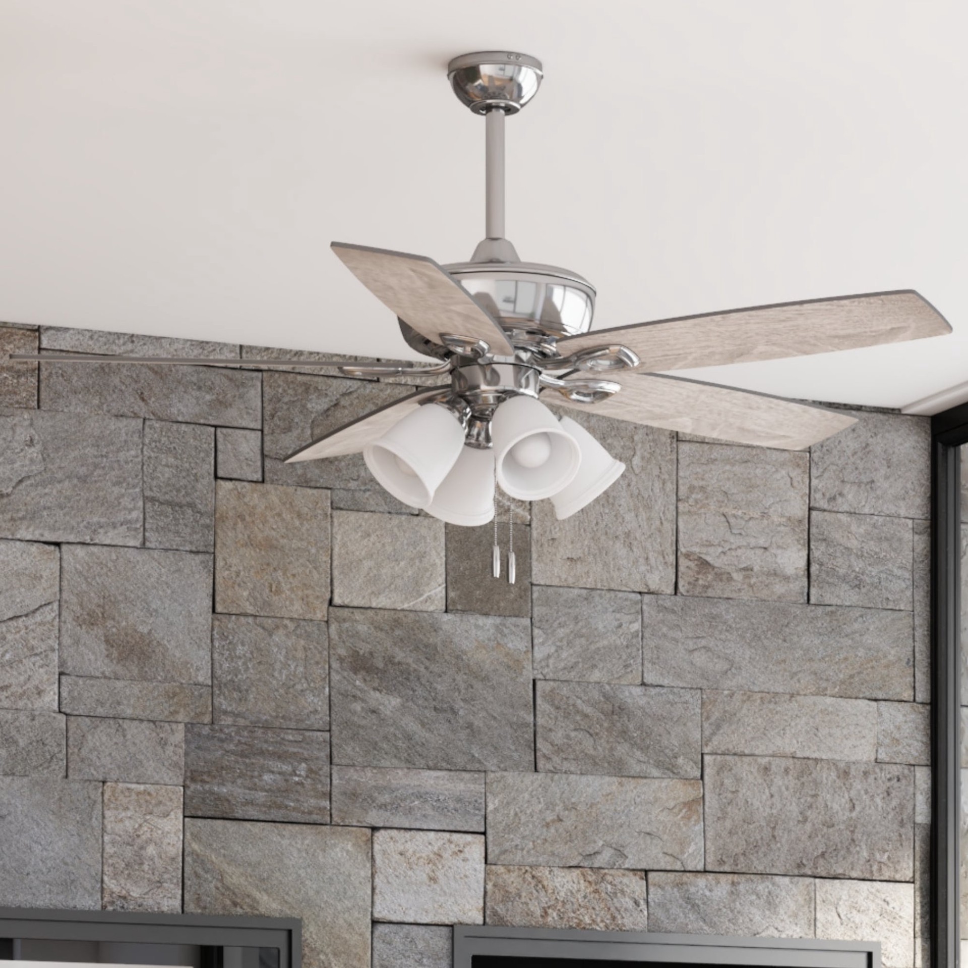 Harbor Breeze Notus 52-in Brushed Nickel with Driftwood/Sienna Blades Ceiling Fan With Light 5 -Blade