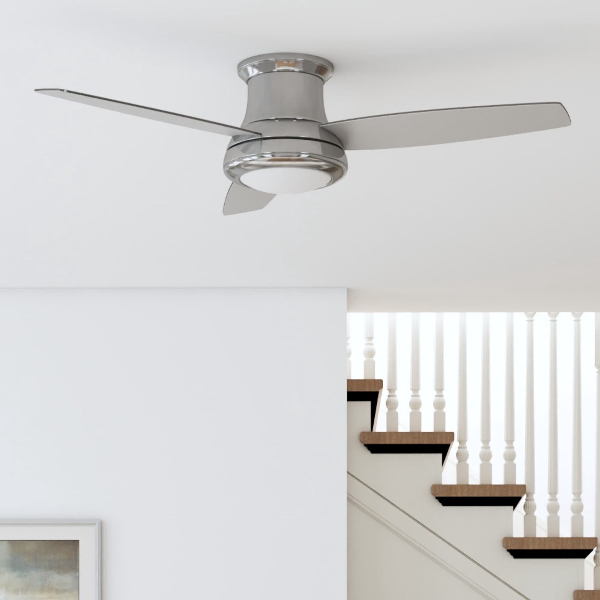 Harbor Breeze Sailstream 52-in Brushed Nickel with Silver Blades Integrated LED Flush Mount Ceiling Fan With Light 3 -Blade