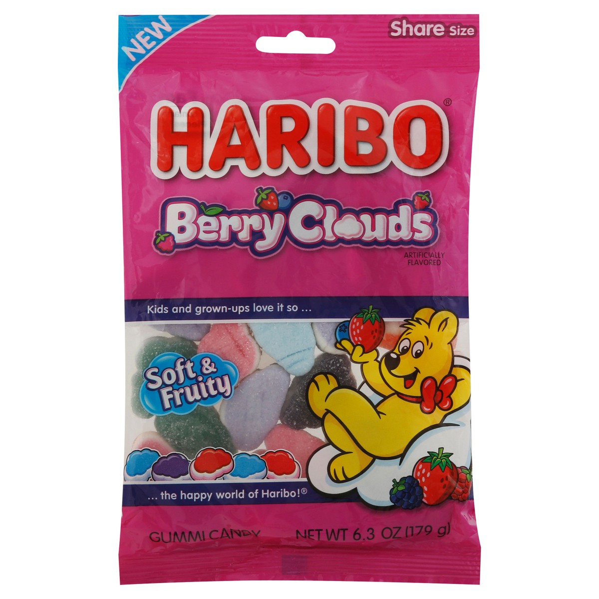 Get ready to float into cloud nine with this berry delicious gummi! Haribo Berry Clouds features a triple-layer foam gummi with a soft, cloud-like texture. Every bag of Berry Clouds packs Blueberry, W…