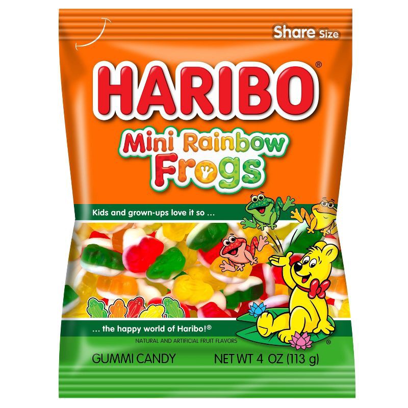 Every bag of HARIBO Mini Rainbow Frogs packs a happy hop of colorful gummies in delicious fruity flavors, including strawberry, lemon, orange, and raspberry. These double-layered gummi & foam treats a…