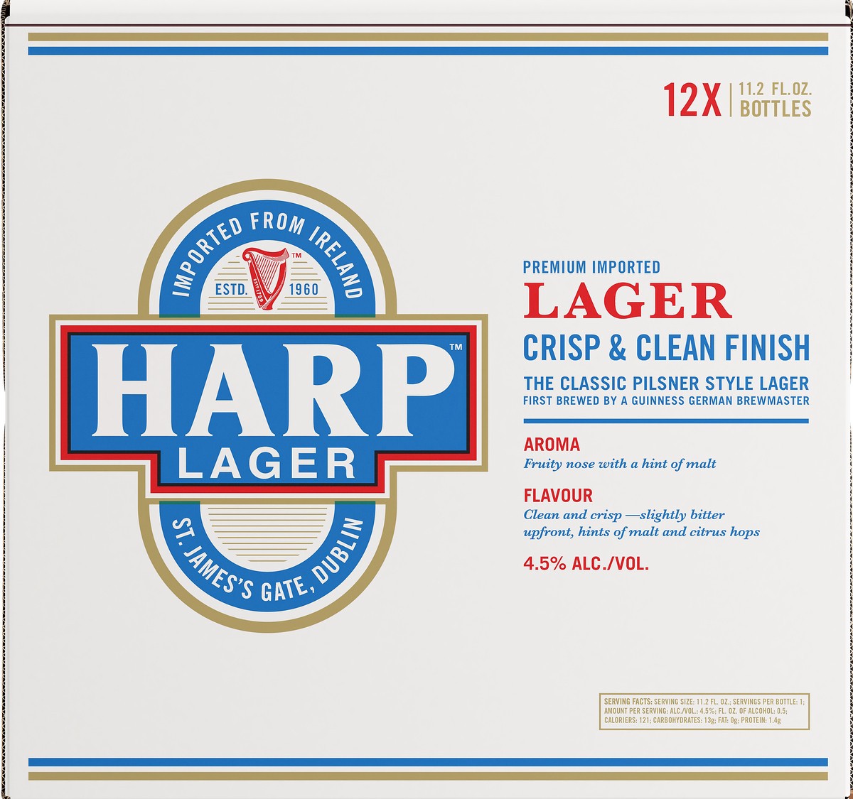 Est. 1960. St. James's Gate, Dublin. The classic pilsner style lager first brewed by a Guinness German Brewmaster. Aroma: fruity nose with a hint of malt; Flavour: clean and crisp - slightly bitter up…