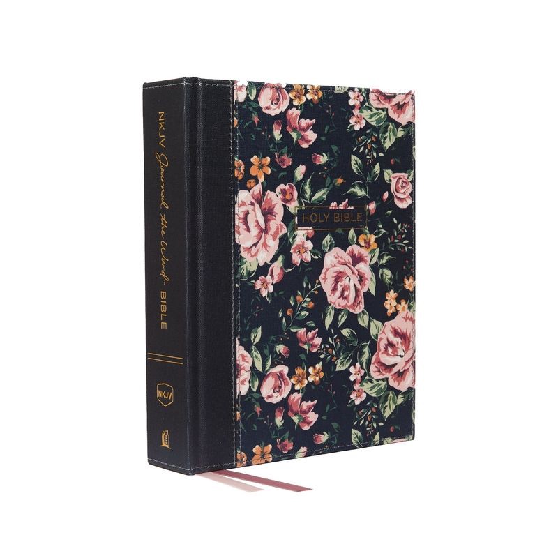 Harper Christian NKJV, Journal the Word Bible, Cloth Over Board, Gray Floral, Red Letter Edition, Comfort Print - by Thomas Nelson (Hardcover)