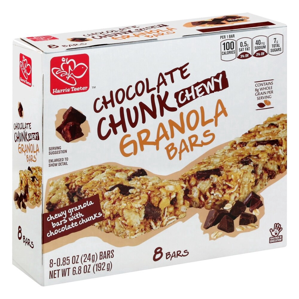 Chewy granola bars with chocolate chunks. Per 1 Bar: 100 calories; 0.5 g sat fat (3% DV); 35 mg sodium (1% DV); 7 g sugars. Contains 8 g whole grain per serving. Together in Education. Your Plus Guara…