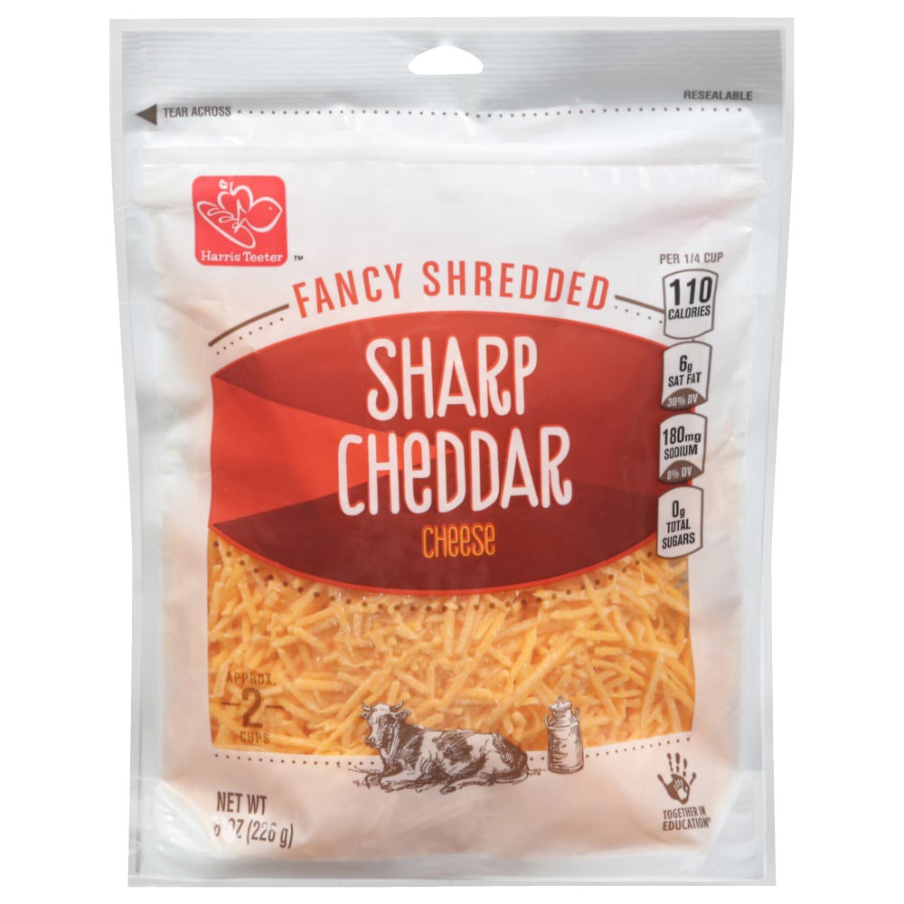 Cheddar Cheese (Cultured Pasteurized Milk, Salt, Enzymes, Color Added), Anticake (Potato Starch, Powdered Cellulose), Natamycin (Mold Inhibitor).
