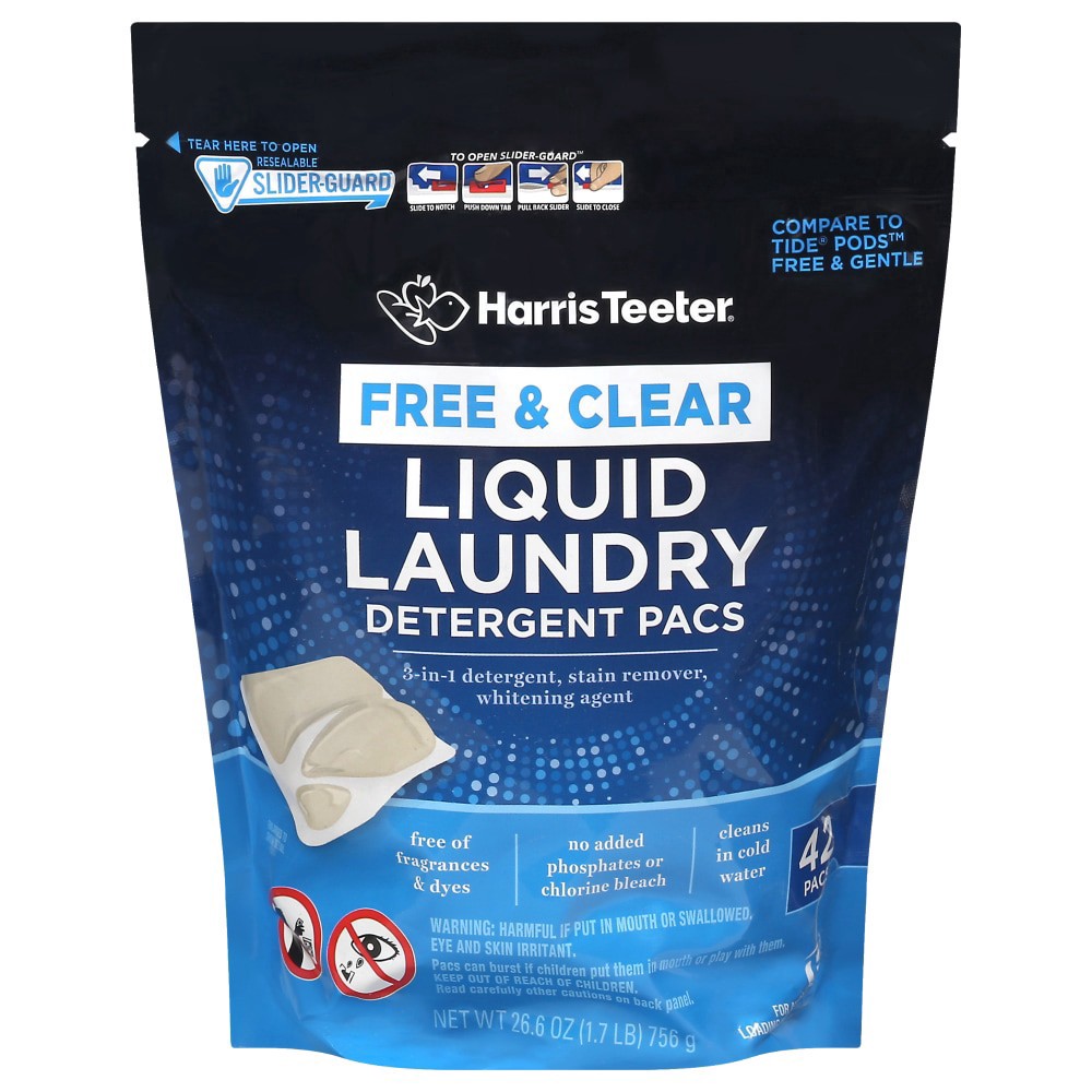slide 2 of 2, Harris Teeter® Free & Clear Liquid Laundry Detergent Pacs, 42 ct