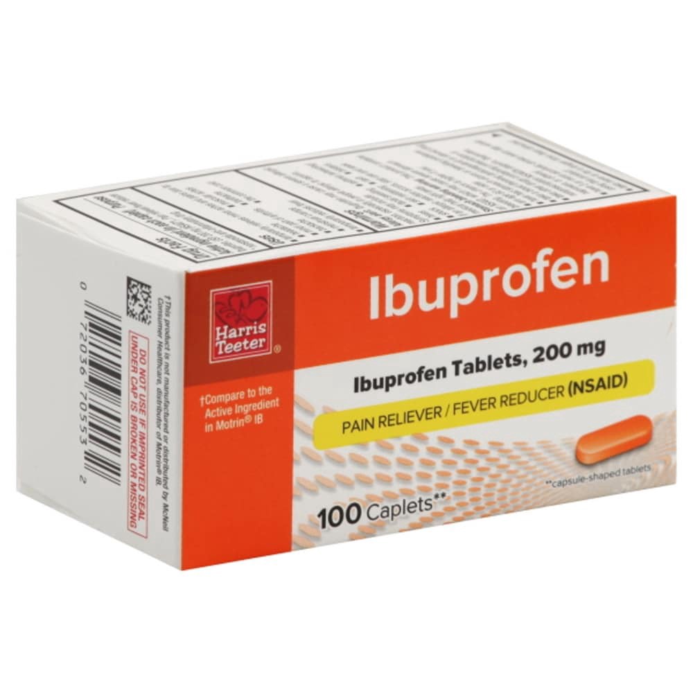 slide 1 of 1, Harris Teeter® Ibuprofen 200mg Pain Reliever Caplets, 100 ct