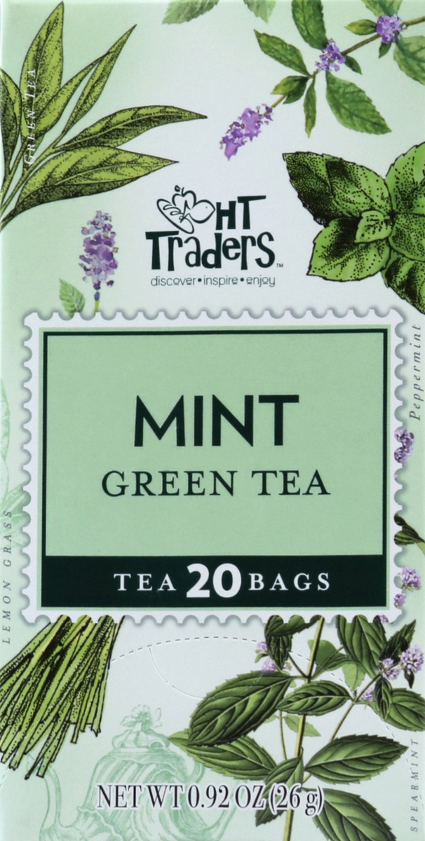 Green Tea, Spearmint, Lemongrass, Peppermint.