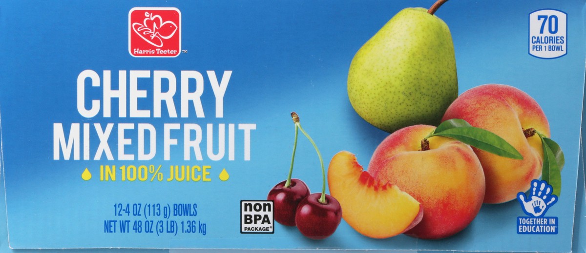 Diced Peaches, Diced Pears, Water, White Grape Juice Concentrate, Cherries Artificially Colored Red with Carmine, Lemon Juice Concentrate, Natural Flavor, Ascorbic Acid (Vitamin C) to Protect Color, C…