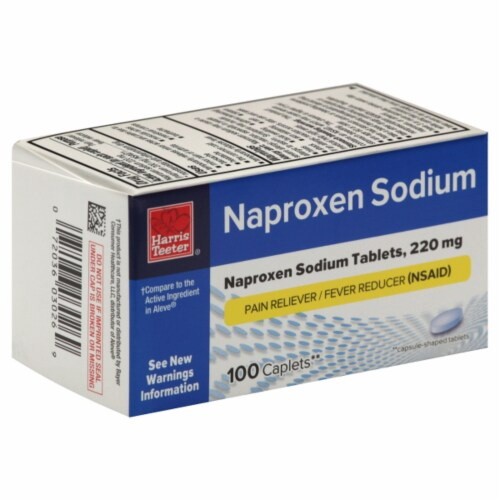 Active Ingredients: (In Each Caplet): Naproxen Sodium (220 mg) (Naproxen 200 mg) (NSAID). Inactive Ingredients: Croscarmellose Sodium, FD&C Blue 2, Macrogol, Magnesium Stearate, Polyvinyl Alcohol, Pov…