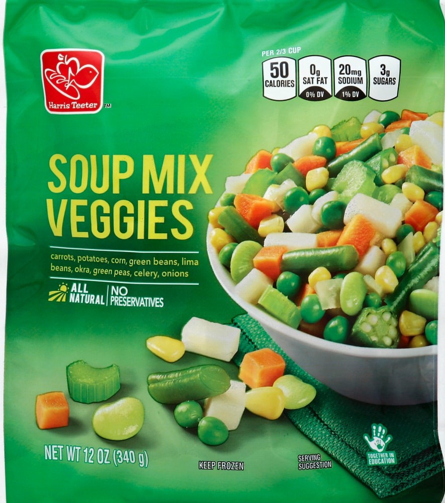 Carrots, potatoes, corn, green beans, lima beans, okra, green peas, celery, onions. All natural. No preservatives. Per 2/3 Cup: 50 calories; 0 g sat fat (0% DV); 20 mg sodium (1% DV); 3 g sugars. Toge…
