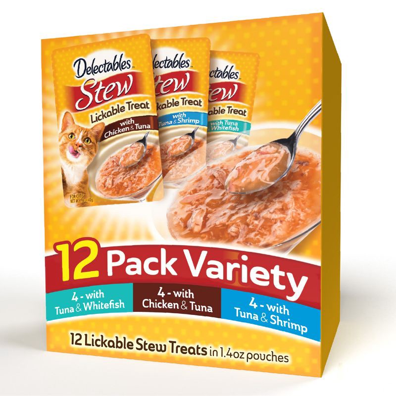 Hartz Delectables Stew Lickable Chicken, Tuna, Shrimp and Whitefish Flavor Cat Treats - 1.4oz/12ct Variety Pack