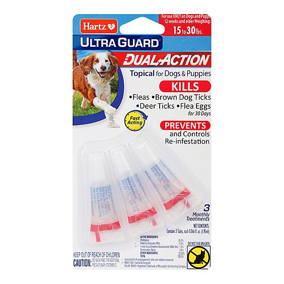 Hartz Ultraguard Topical For Dog & Puppies Dual Action 15 To 30 Lbs Blister Pack - 3 Count