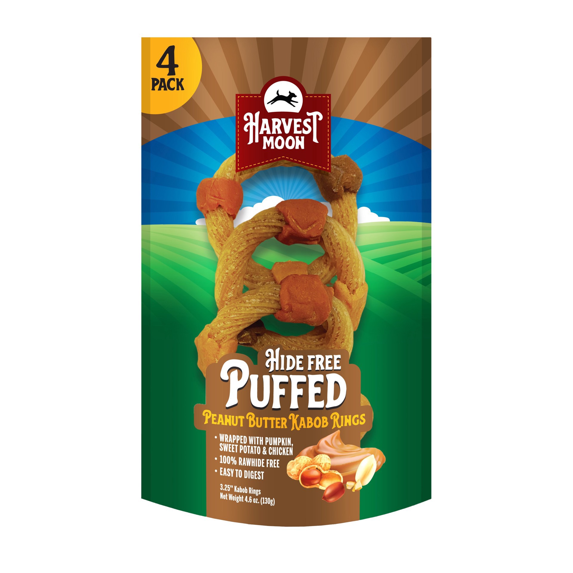 Harvest Moon Puffed Hide Free Kabob Rings Peanut Butter Dog Treat 4 Pack 4 ea