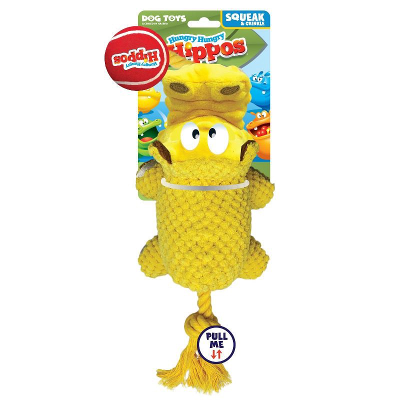 - Classic board game Hungry Hungry Hippo character now a fun plush dog toy.