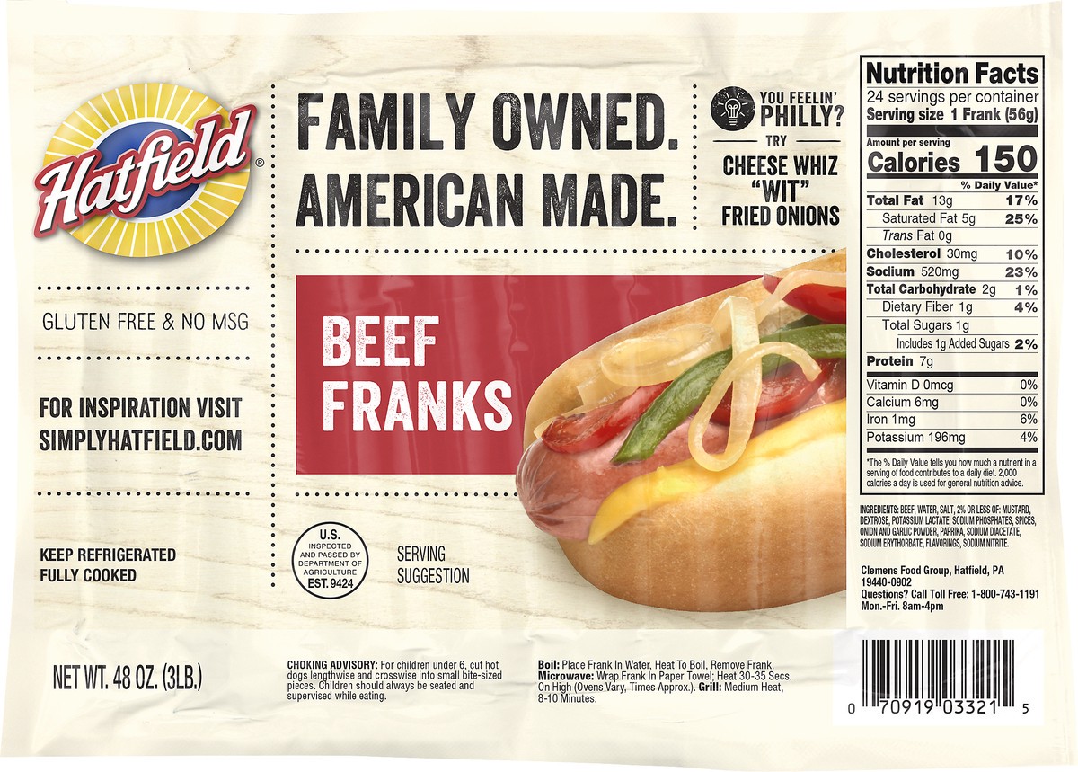 Gluten free & no MSG. Family owned. Fully cooked. U.S. Inspected and passed by Department of Agriculture. simplyhatfield.com. For inspiration visit simplyhatfield.com. Questions? Call Toll Free: 1-800…