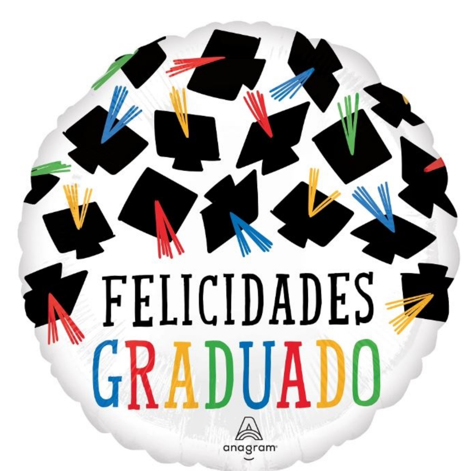 slide 2 of 2, Hats off Felicidades Graduado Balloon, 18", 18 in