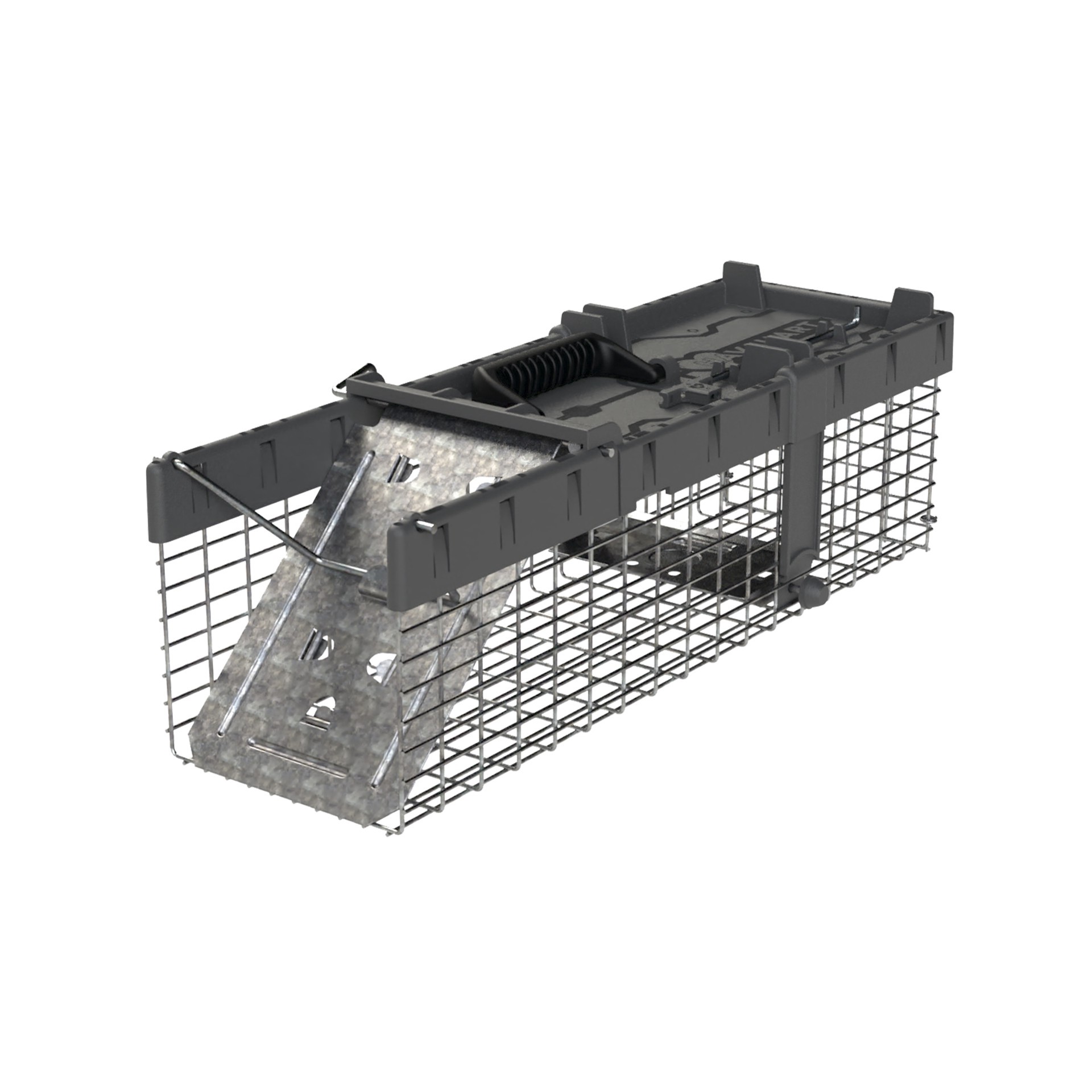 Solid top and door protects you from contact with the trapped animal. Wide handle provides a comfortable, secure grip while carrying. Strong, spring-loaded door lock prevents escapes. Outside trigger …