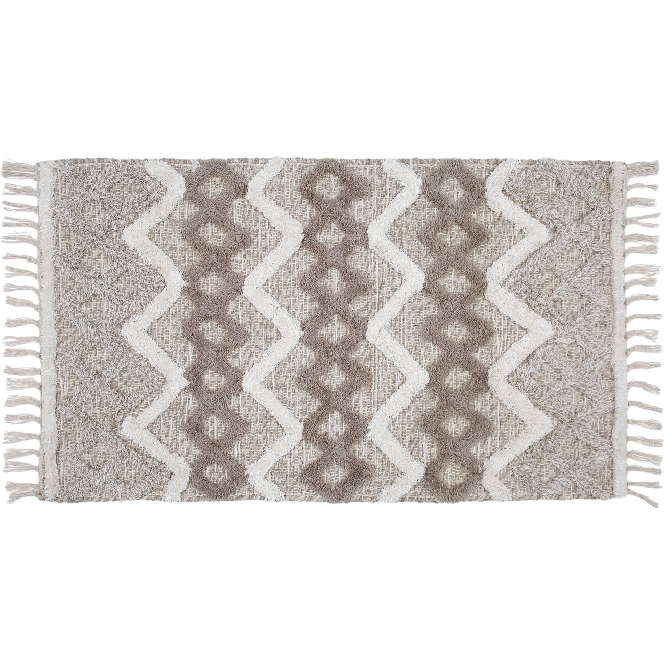 Enhance your living space with this Haven + Key Chevron Tufted Scatter Rug in Taupe. Measuring 27" x 45", this stylish rug is crafted from a blend of wool and cotton, offering a soft and durable textu…