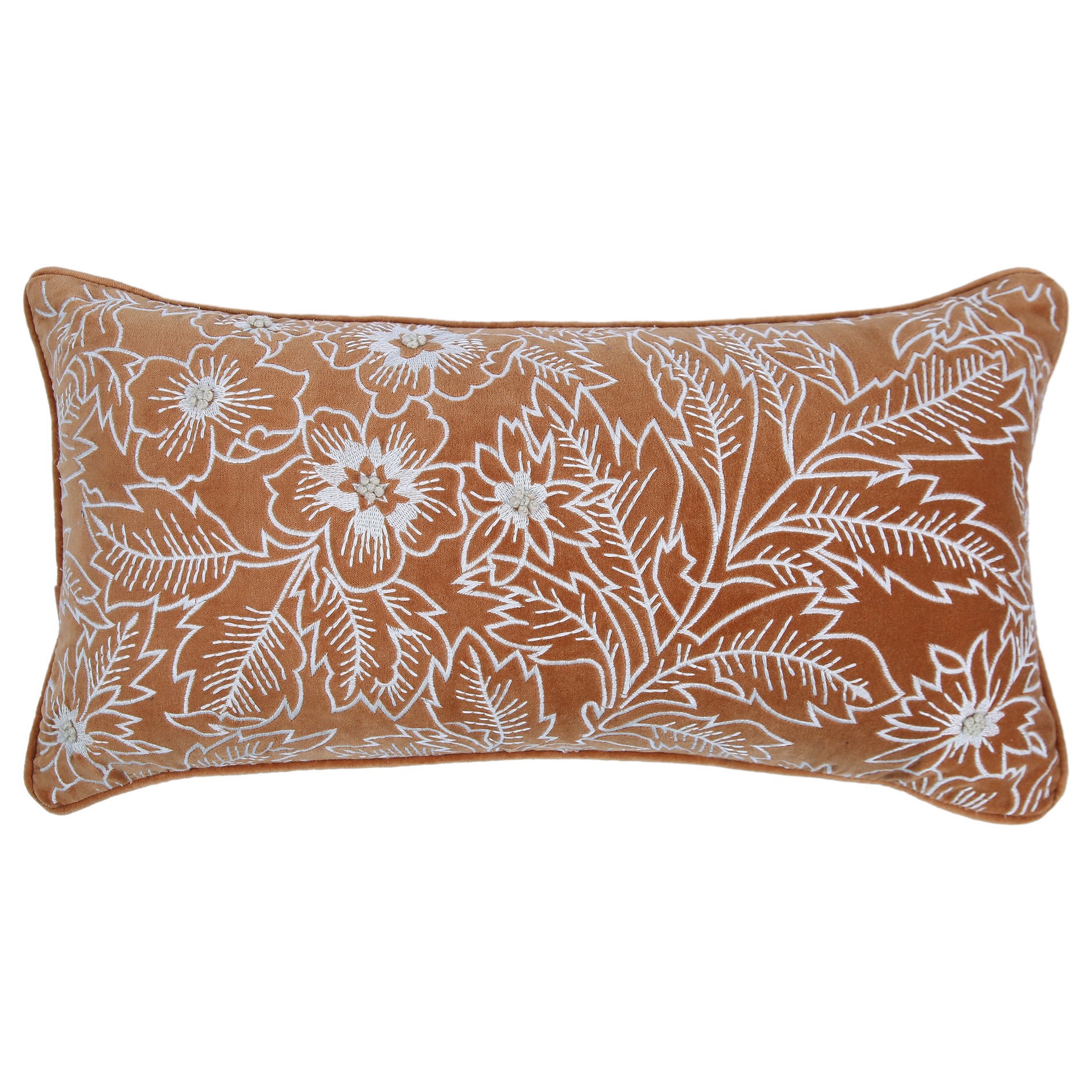 Haven & Key Haven + Key Embroidered Velvet Decorative Lumbar Throw Pilow - Pecan