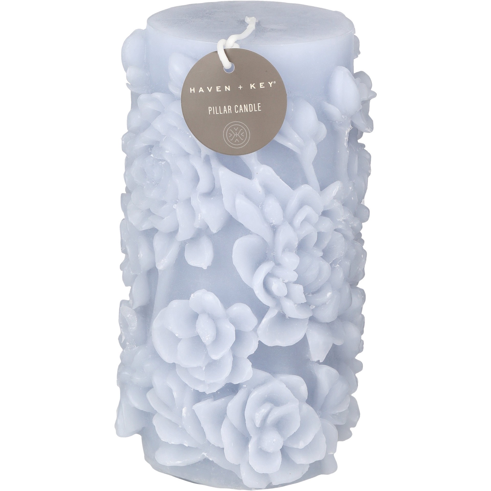 Enhance your home decor with the exquisite Haven + Key Floral Sculpted Pillar Candle. Standing at 7.1 inches tall, this pillar candle features an intricate figural floral design that adds a touch of e…