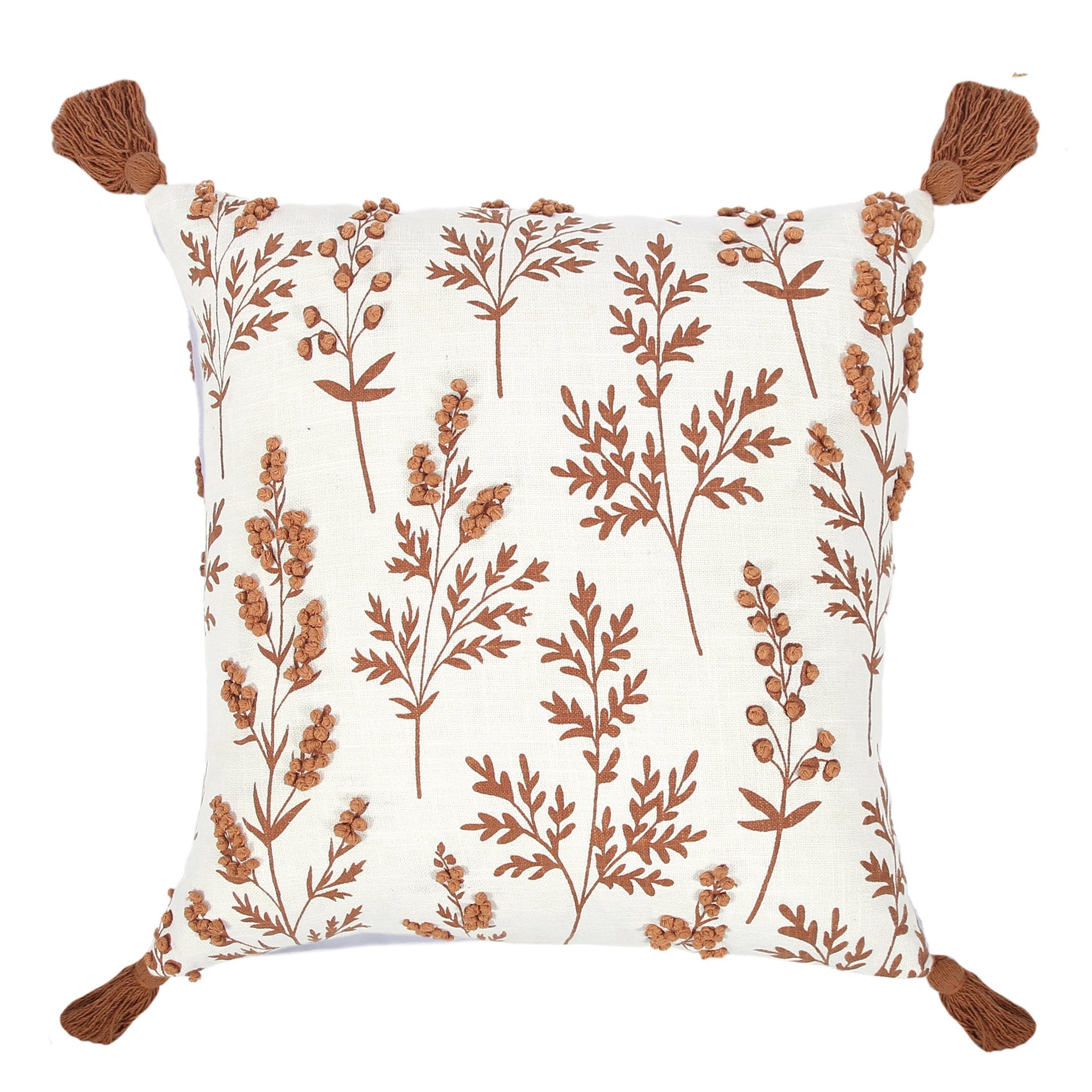 Haven & Key Haven + Key Floral Stems Decorative Throw Pillow with Tassels - Pecan