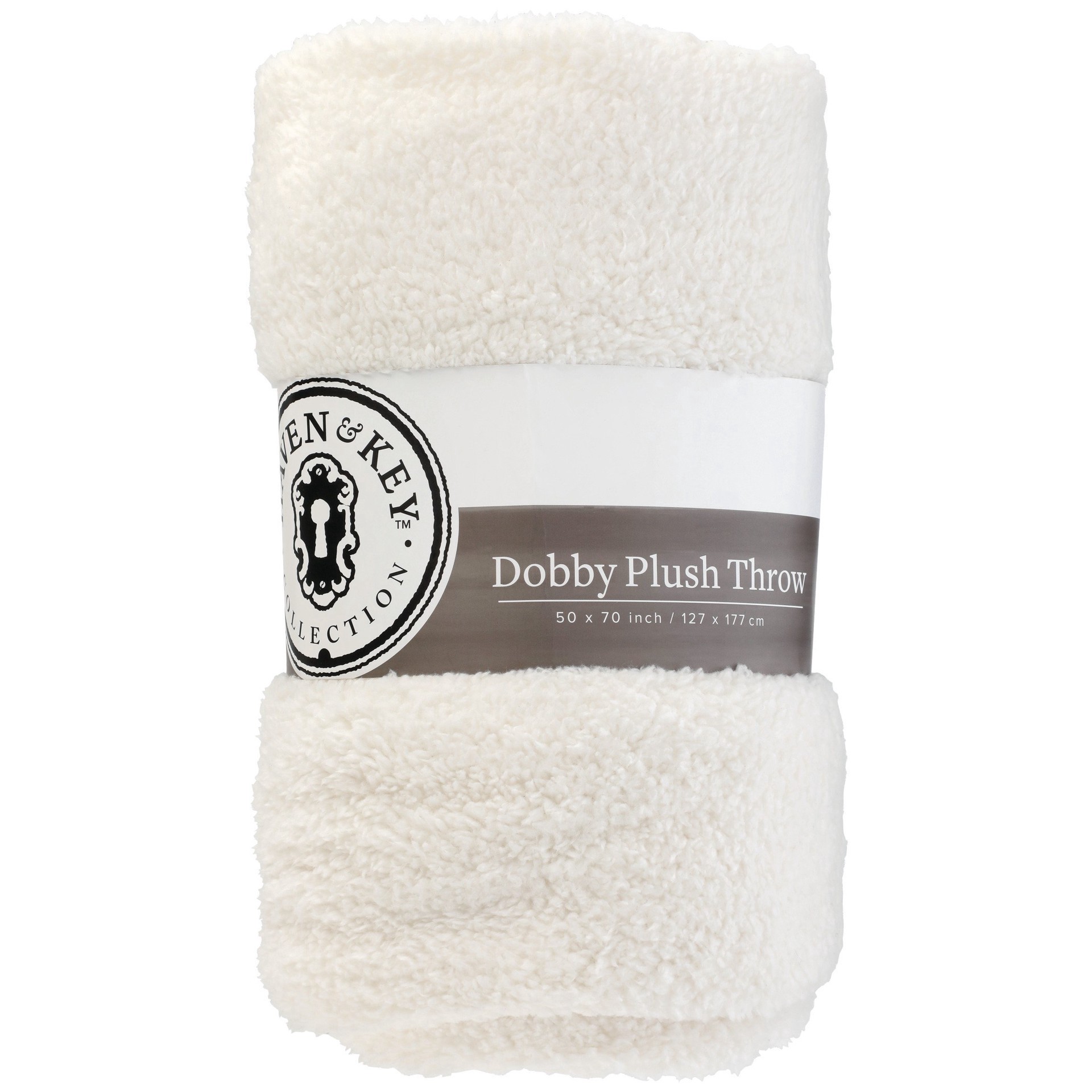 Haven Key Ivory Dobby Plush Throw, 50 in. X 70 in.