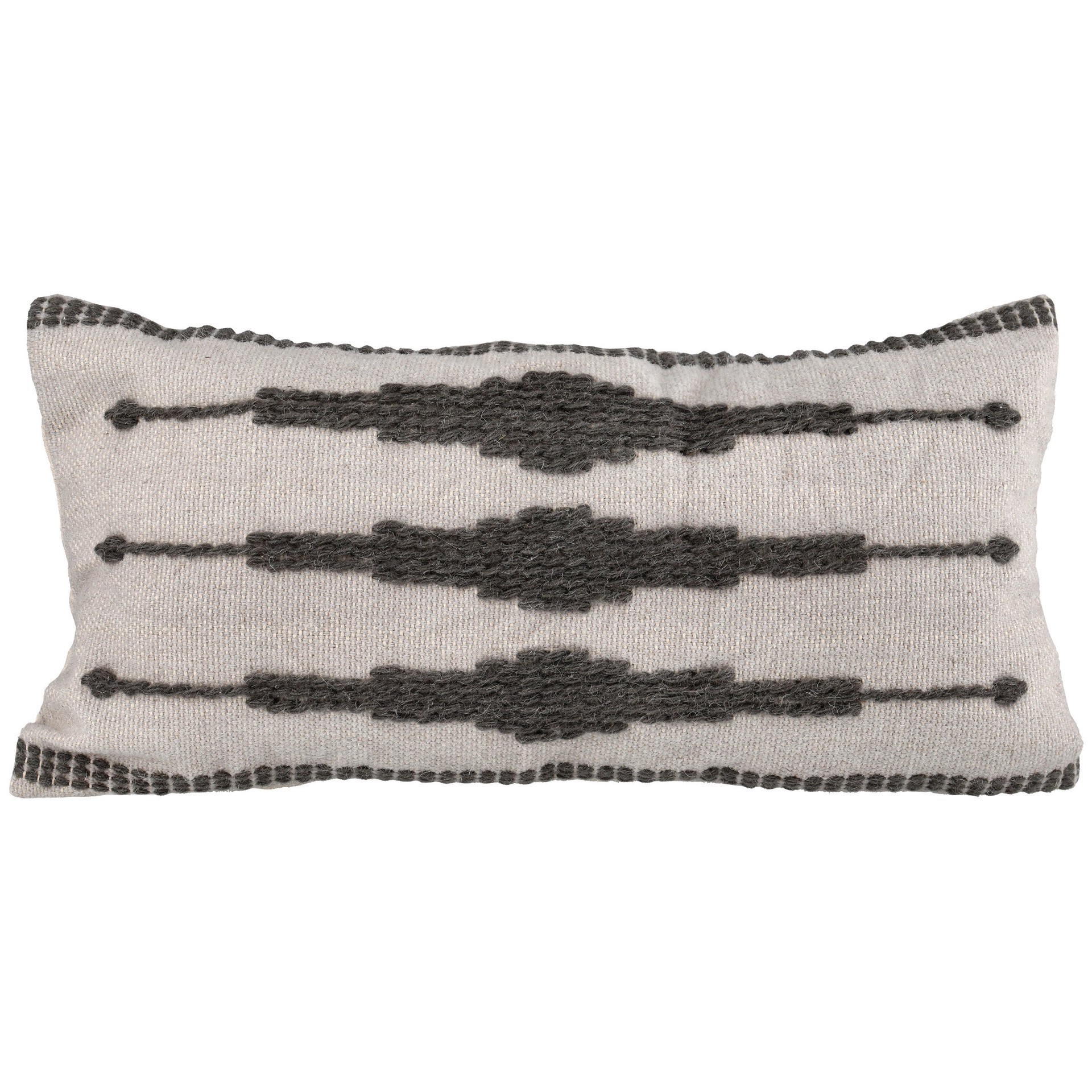 Bump up your living spaces comfort level with this Haven Key lumbar throw pillow. Made of cotton and wool, it has decorative gray stitching as part of its design. Plus, the rectangular shape helps su…