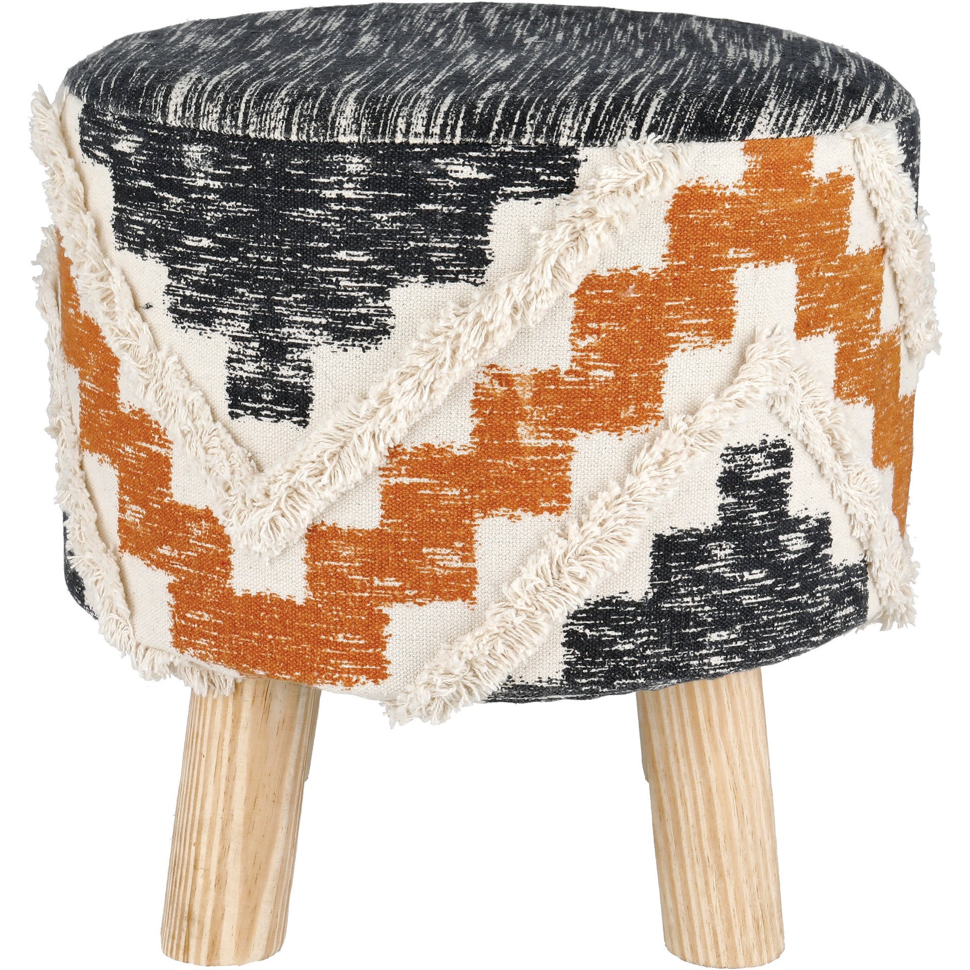 A tricolor combo of black, beige and orange makes this mediumsized pouf by Haven Key a statement piece in your home. Resting upon four sturdy wood legs, the cushiony seat has a chevron pattern on theā¦
