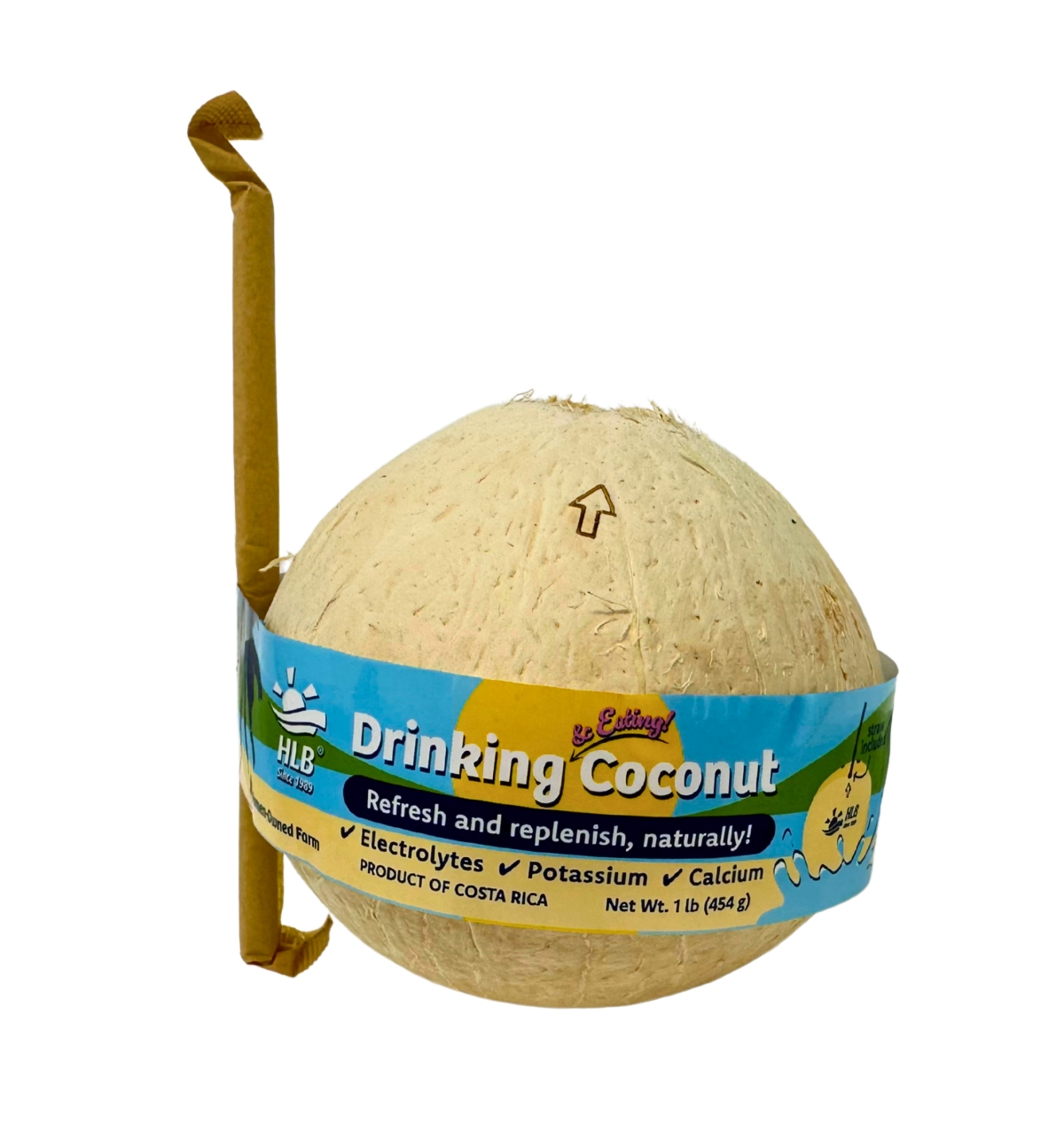 HLB's fresh coconut water is a natural and delicious source of electrolytes and nutrients. The coconuts are easy to handle: just locate the arrow, insert the included (sustainable!) straw into the opeā¦