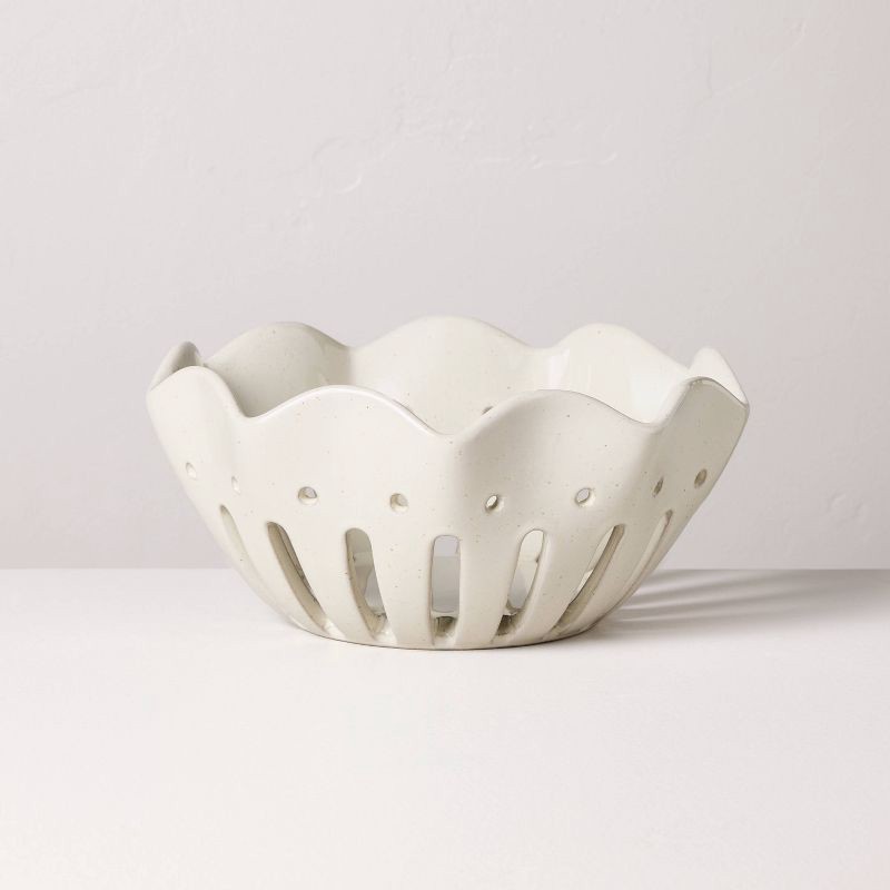 This Large Wavy Edge Berry Bowl from Hearth & Hand™ with Magnolia is perfect for storing your berries. Made of stoneware material, this berry bowl is designed in a sour cream color with a glossy finis…