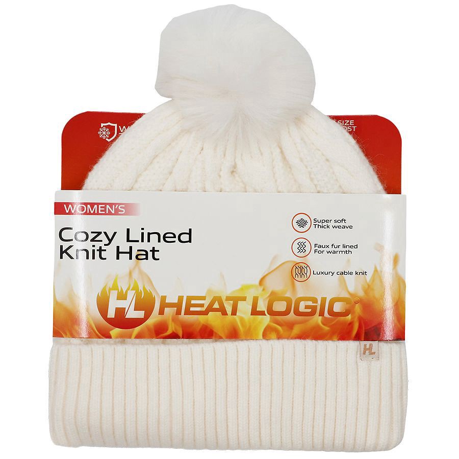 Heat Logic Cable Pom Beanie with Cozy Sherpa Lining