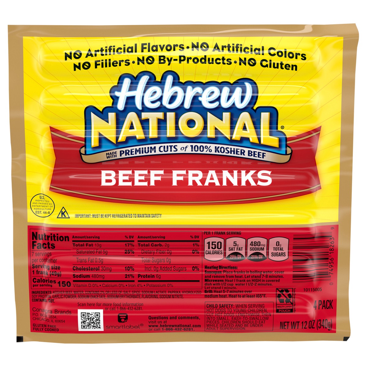 Hebrew National Beef Franks start with premium cuts of 100% kosher beef and an original spice blend dating back to 1905 for the delicious flavor that families have loved for generations. Each bite giv…