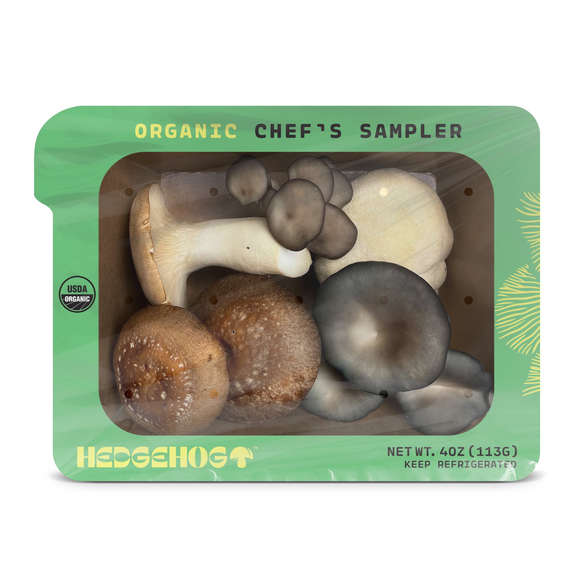 Hedgehog Chef's Sampler Mushrooms, a variety of mushrooms to craft your favorite dishes. These mushrooms are harvested at peak freshness and packed in shelf-life extending trays to guarantee quality a…