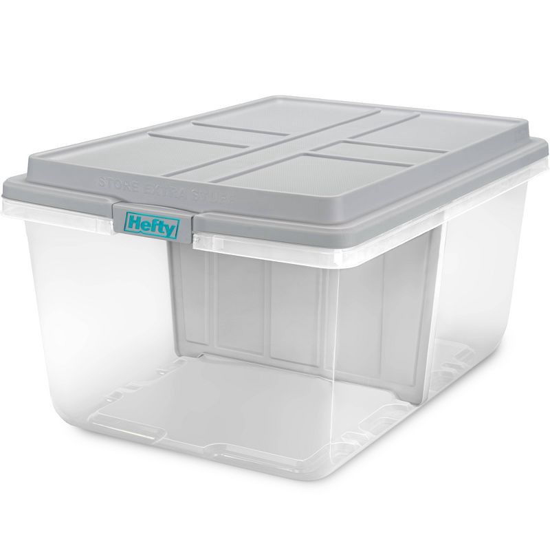 Hefty - The Toughest Name in Storage. The newly redesigned XL clear plastic storage container by Hefty has a stackable, taller lid allowing you to store taller items and extra stuff. The XL lid has lo…