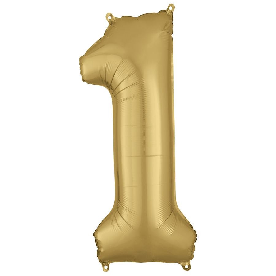 Helium Inflated Balloon Number 1 White Gold 5.5x0.25x7.5