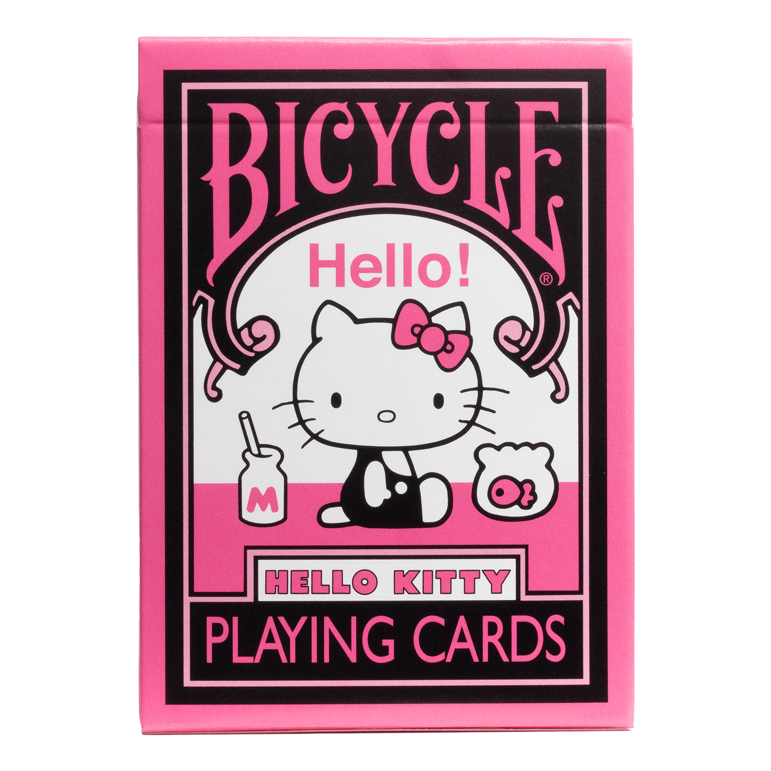 Everything's better in pink! Whether you're a life‐long fan or simply appreciate the timeless cuteness of everyone's favorite girl, the Bicycle Hello Kitty Black & Pink Playing Cards will fill your ne…
