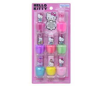 Rev up the fun with this adorable Hello Kitty nail polish set. Not only does she have eight fabulous shades to choose from but each color sports a pleasing fragrance as well. With a water-based formul…